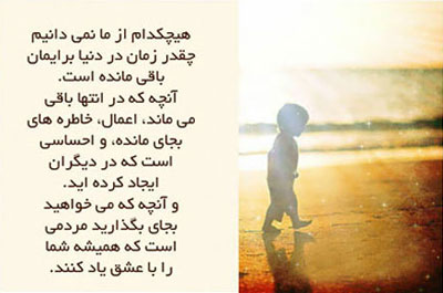 جمله زیبایی بود امیدوارم همه ما در تمامی مراحل زندگی جوری زندگی کنیم که وقتی یادی از ما می شه خوبی و شادی در ذهن ها تداعی بشه. در ضمن وبلاگتون بسیار زیباست.
